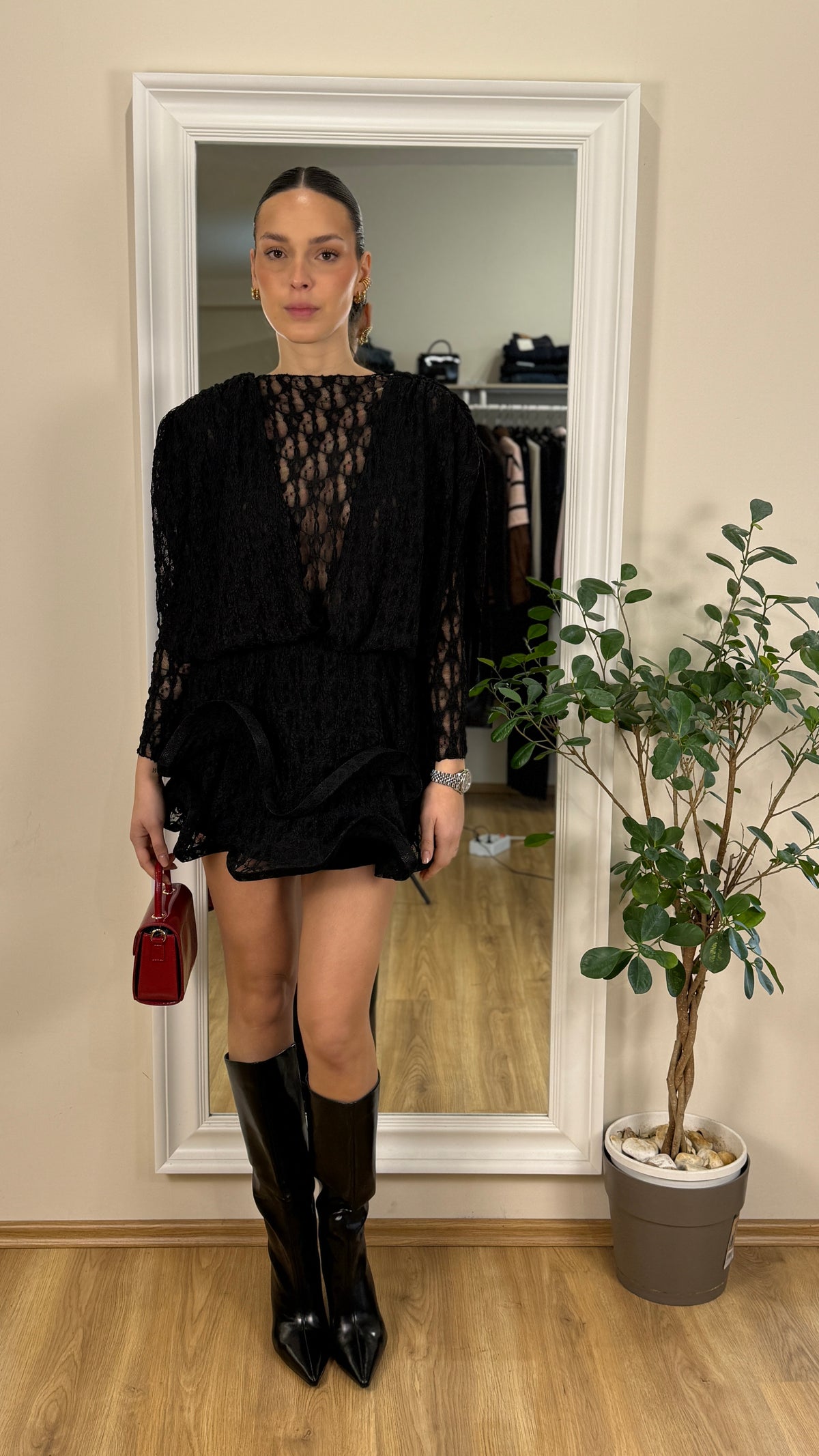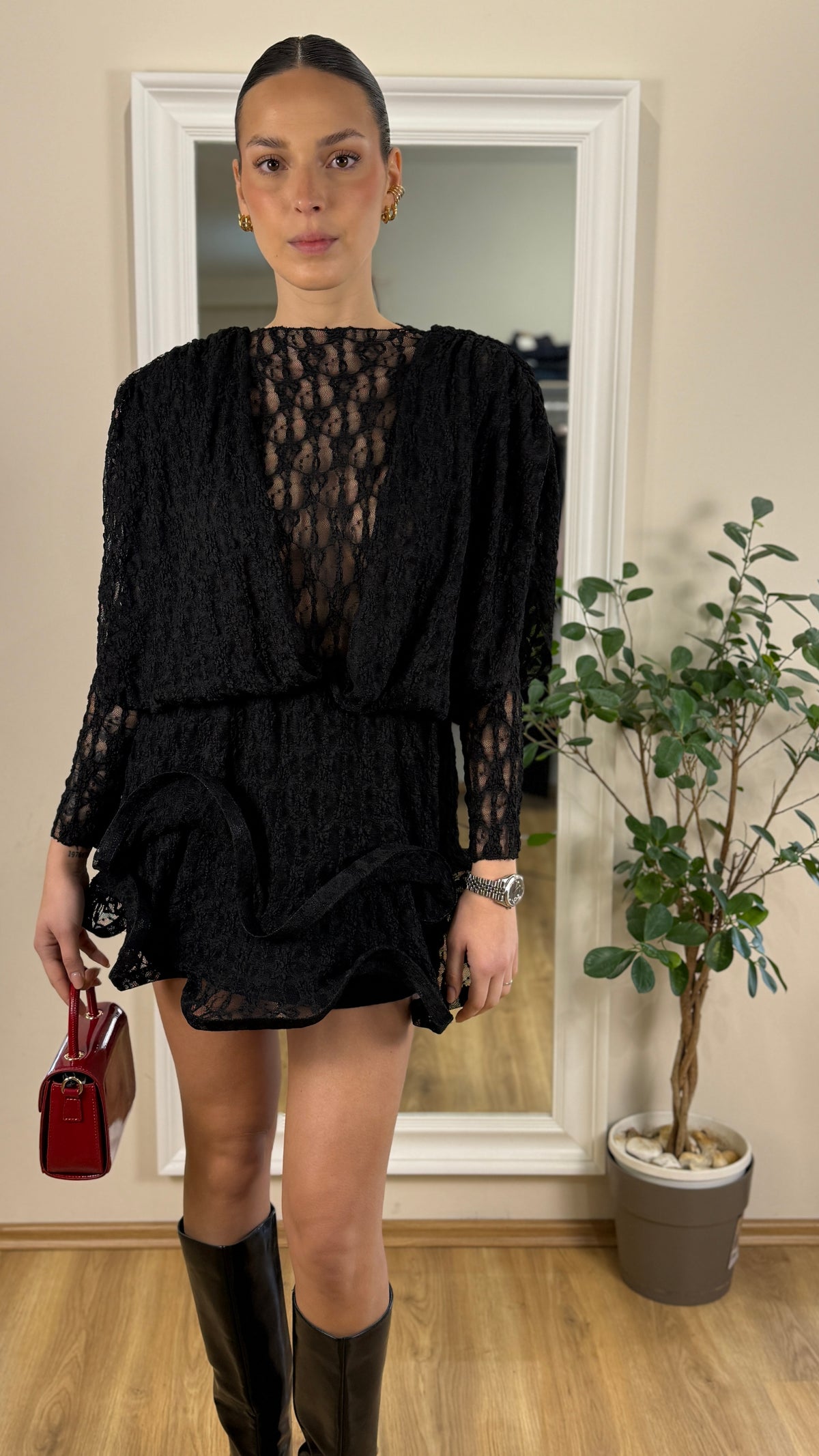 Abitino con balze rigide in pizzo.