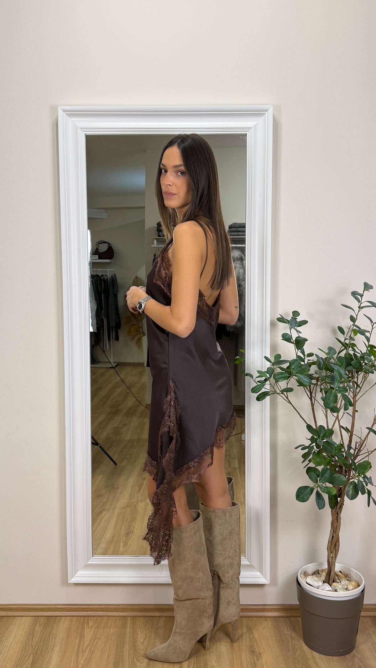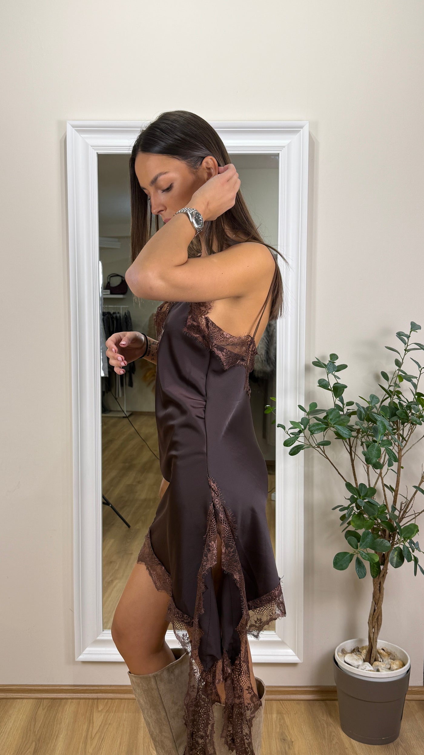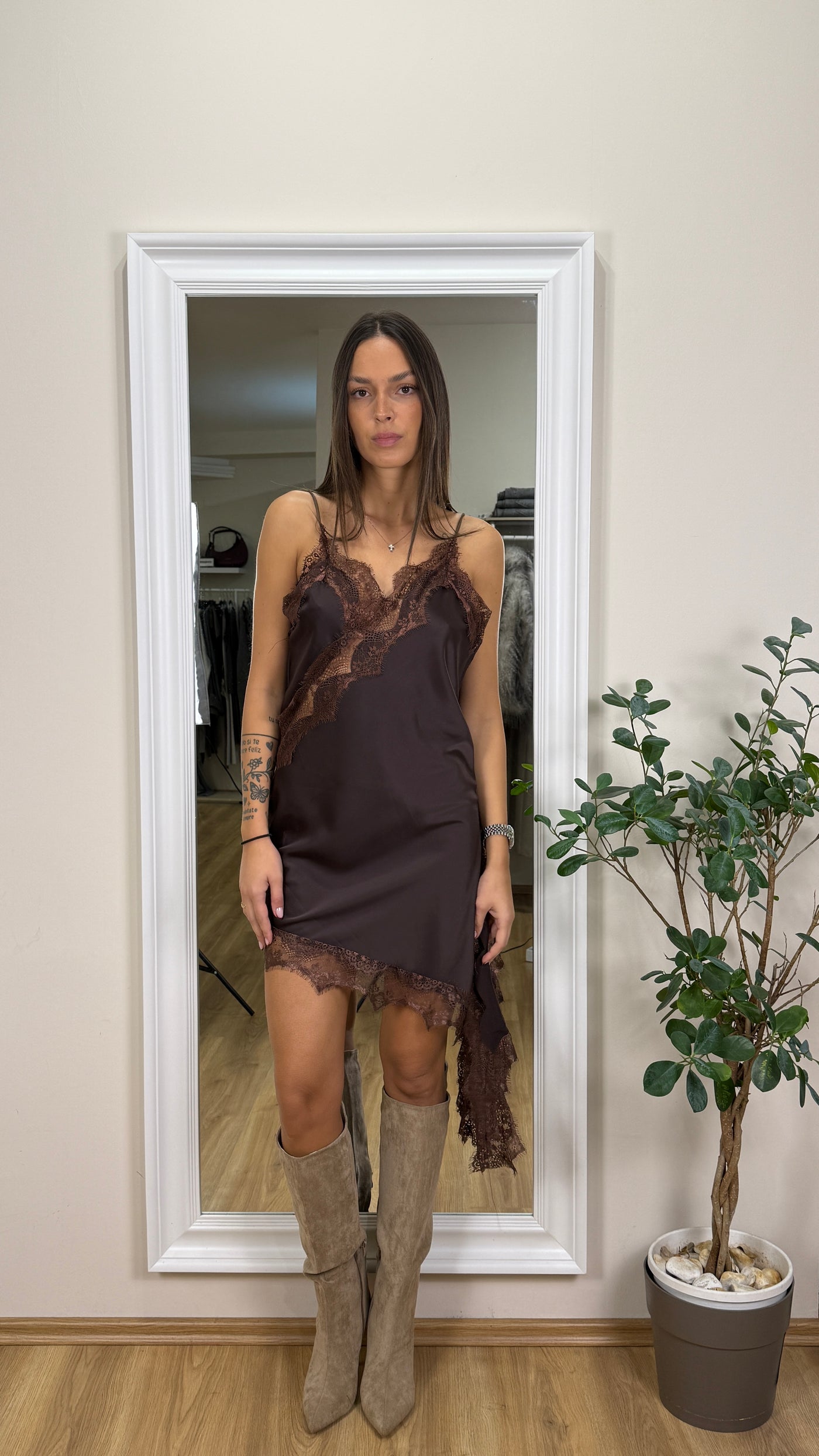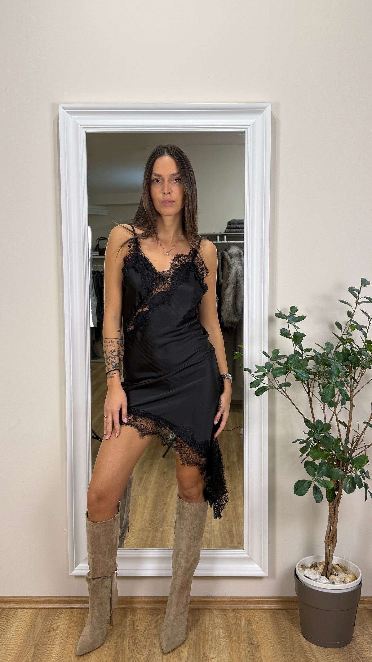 Informare quando questo articolo sarà disponibile Abito effetto raso e pizzo con spalline.