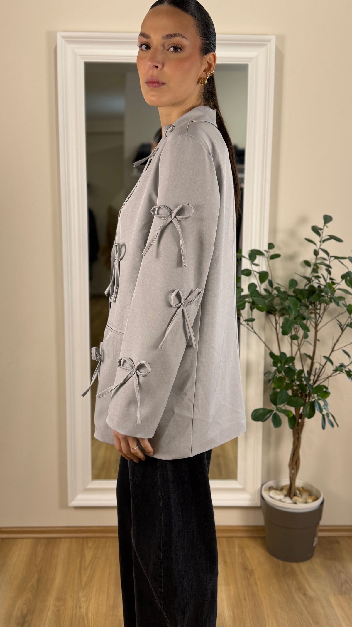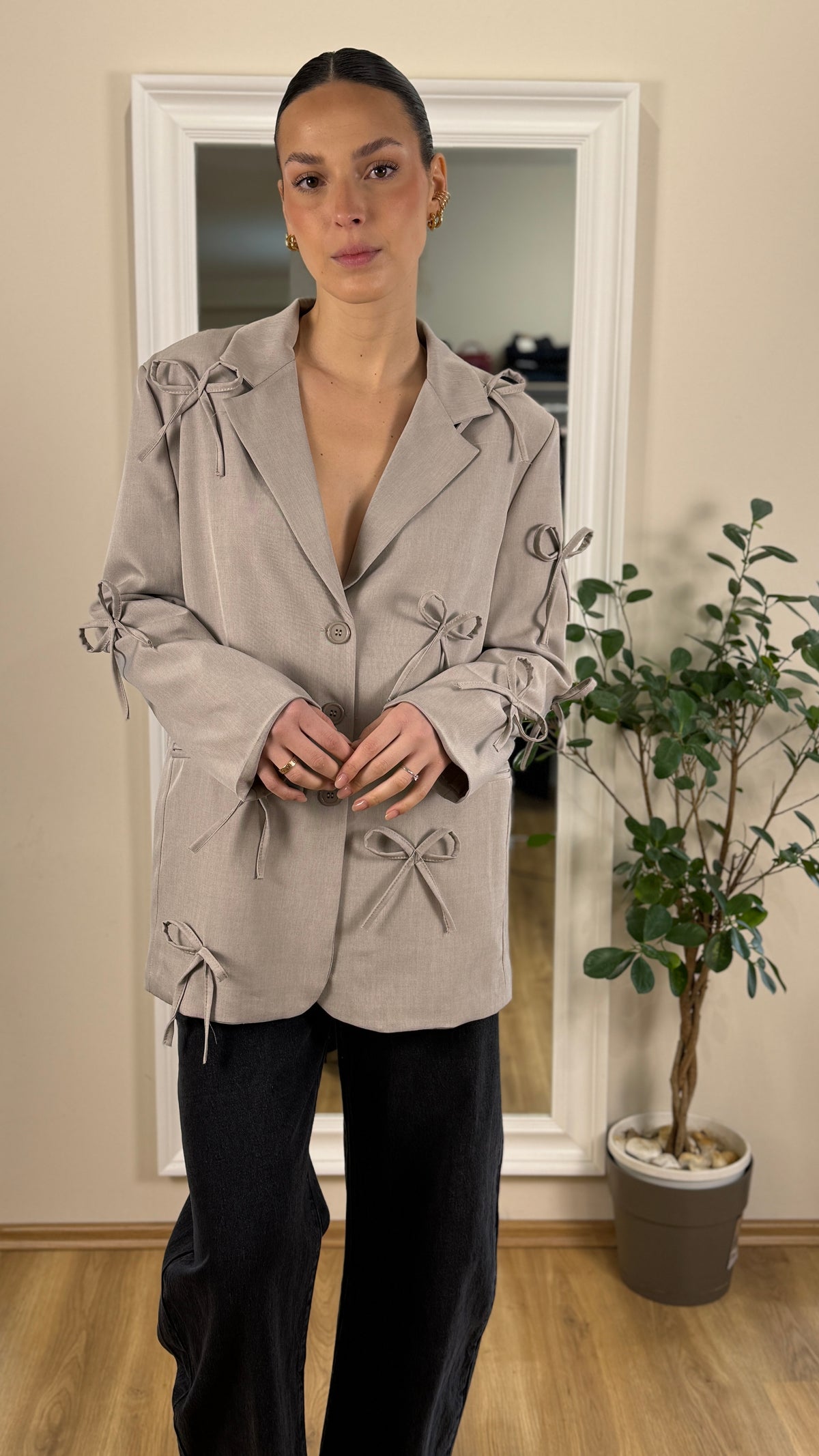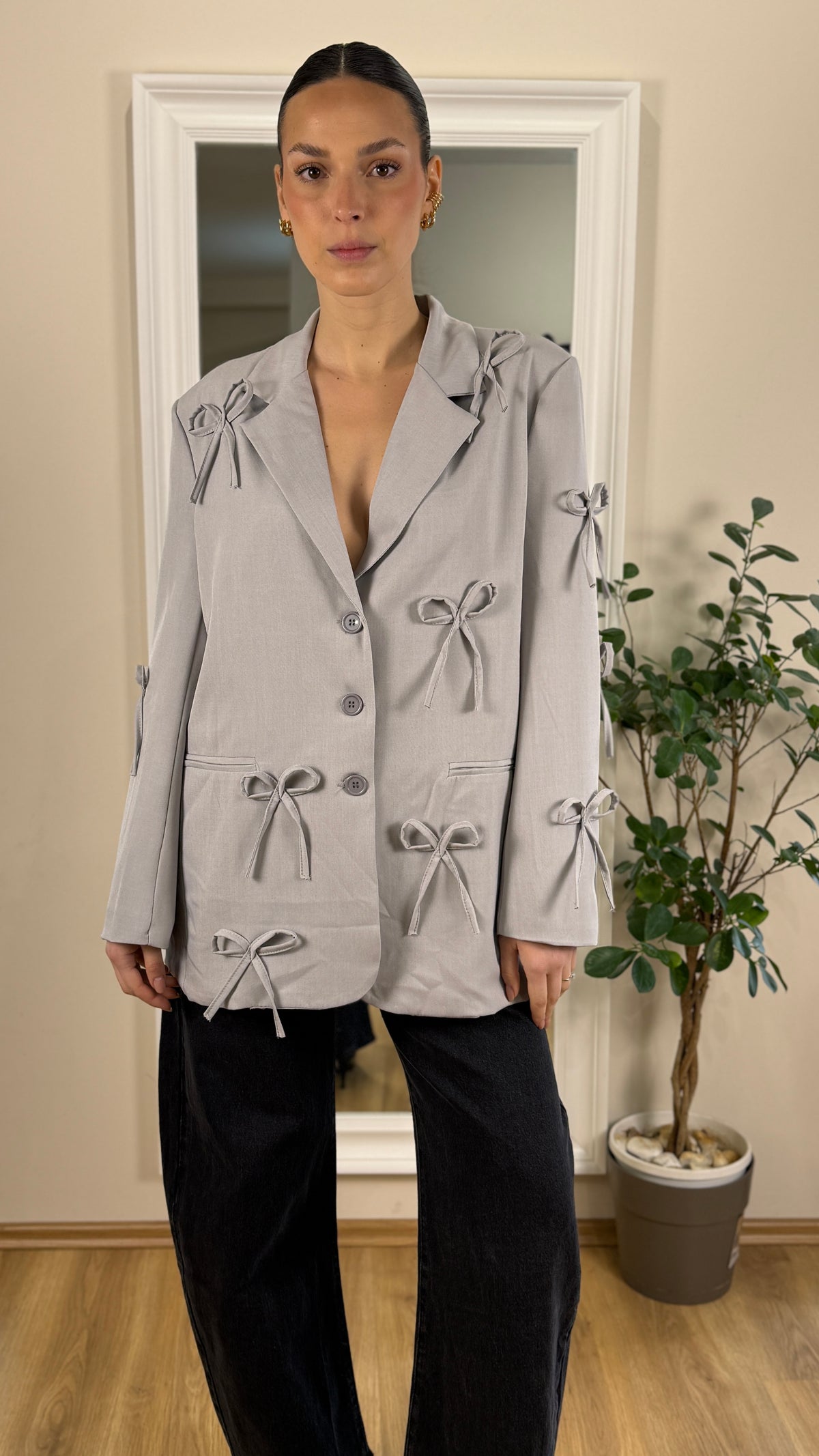Blazer over size con fiocchi nella parte davanti.